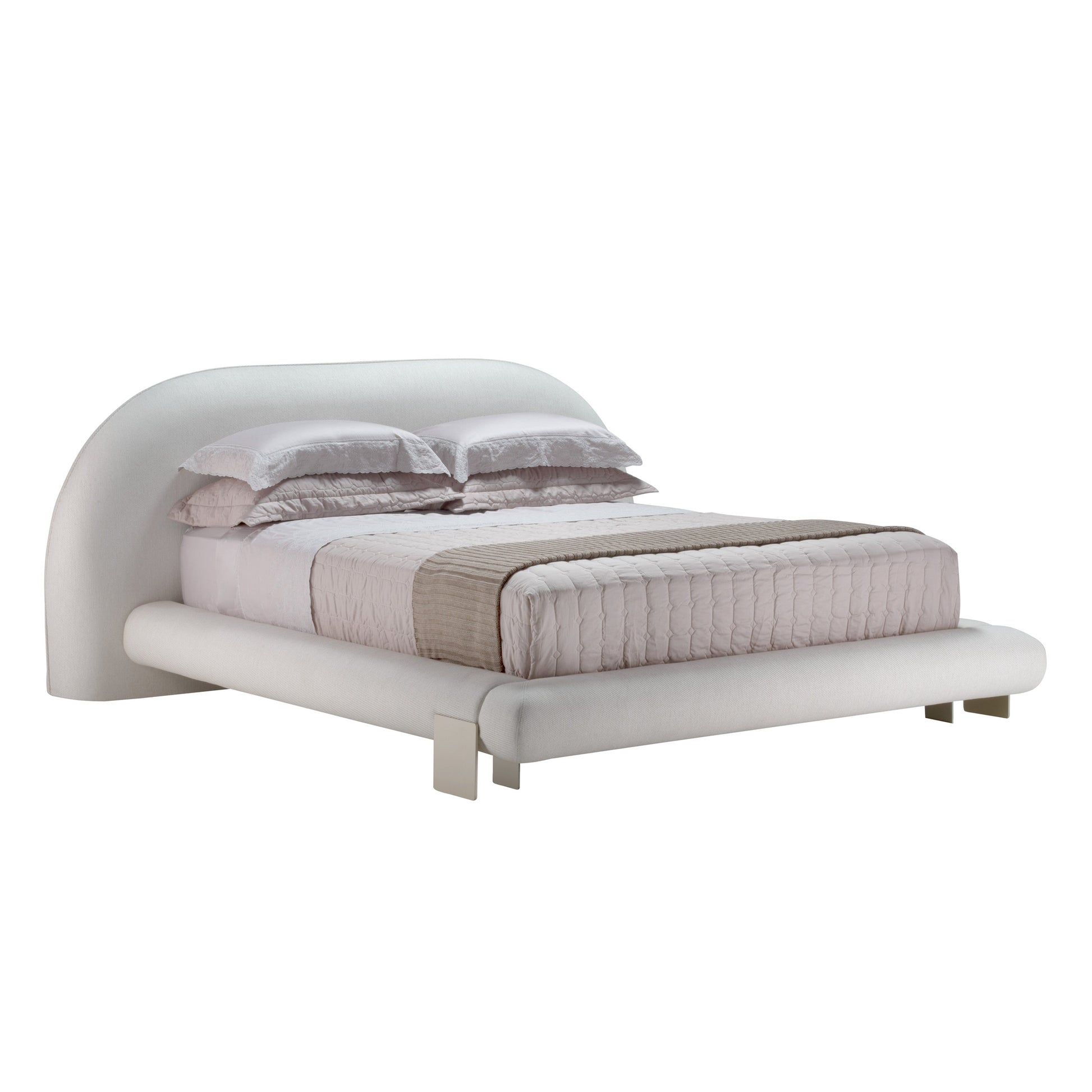 Cama King: - Medidas Respaldo: 275 x 25 x 105 - Medidas Cama: 275 x 249 x 105 Cama de diseño moderno, con estructura tapizada y líneas suaves que aportan calidez y elegancia al dormitorio. Su respaldo acolchado ofrece confort y presencia, convirtiéndose en el punto focal del ambiente. Fabricada con materiales de alta calidad, esta cama está pensada para quienes valoran tanto el descanso como el estilo contemporáneo.