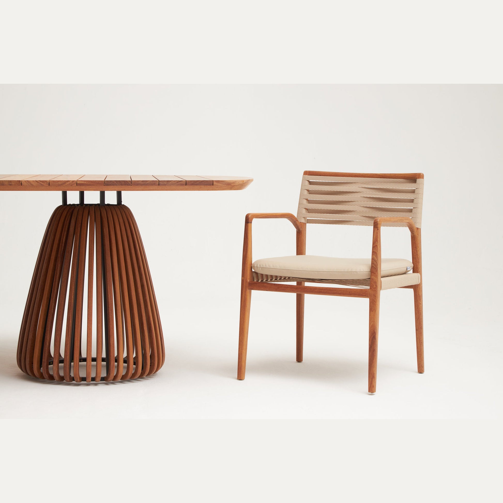 Descubre nuestra colección de muebles de terraza y jardín de lujo, diseñados para elevar cualquier espacio exterior con estilo y confort. Cada pieza está fabricada en madera cumarú, una de las maderas tropicales más resistentes, reconocida por su alta durabilidad frente a la humedad, el sol y el uso intensivo al aire libre. Los diseños combinan la solidez de la madera cumarú con detalles en tejido premium, cuerda náutica y aluminio, creando muebles de exterior exclusivos que se adaptan tanto a terrazas residenciales como a jardines y proyectos de hotelería. Nuestra propuesta une diseño contemporáneo, resistencia y sofisticación, ofreciendo desde mesas de comedor de exterior hasta sofás de terraza y poltronas de jardín que transforman cualquier ambiente en un espacio acogedor y elegante.
