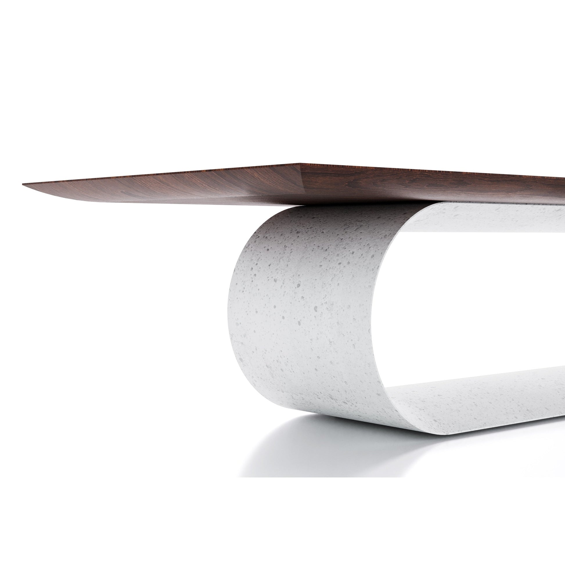 Base en concreto. Cubierta rectangular enchapada en lámina. Las mesas de 2700 y 3000 cuentan con cubierta bipartida.