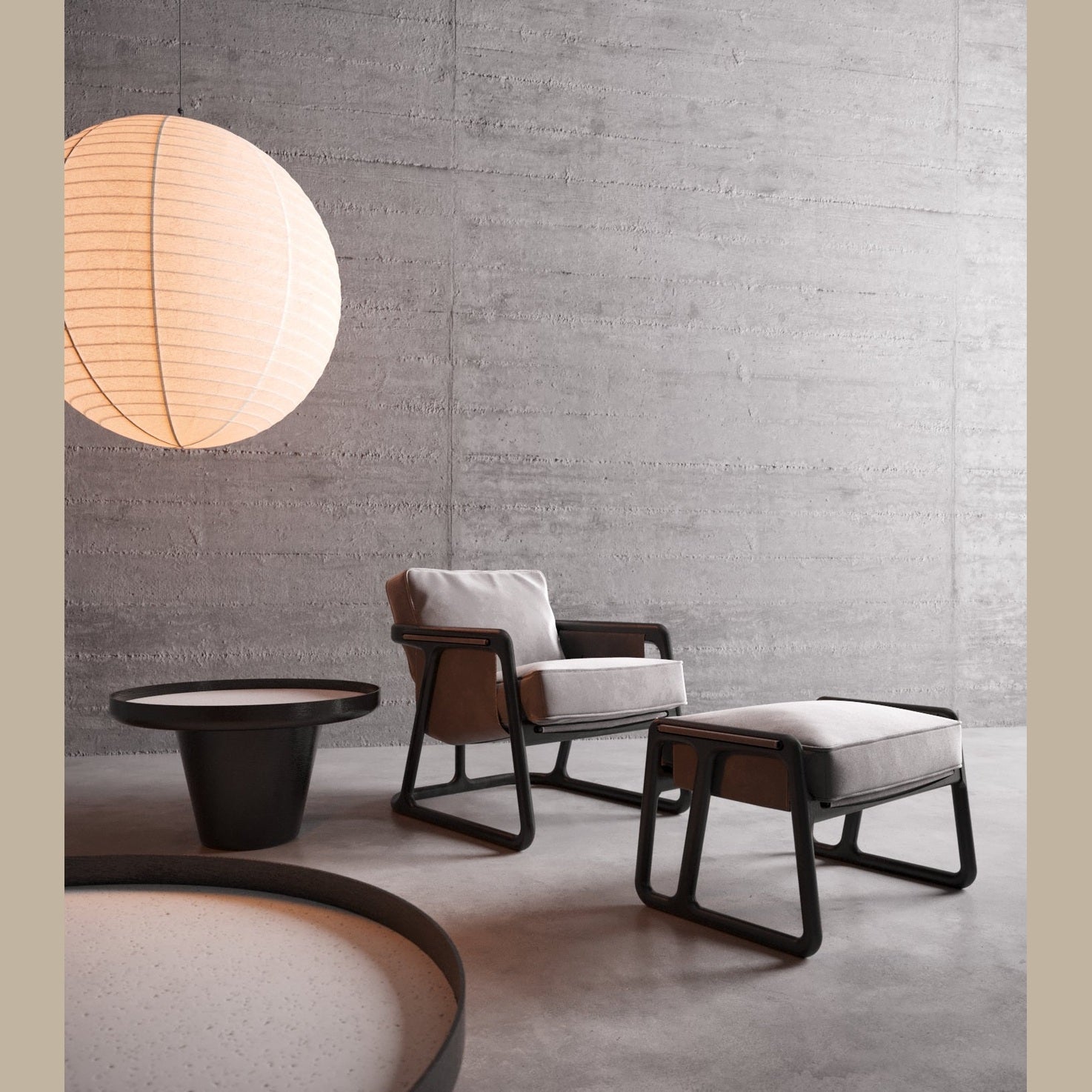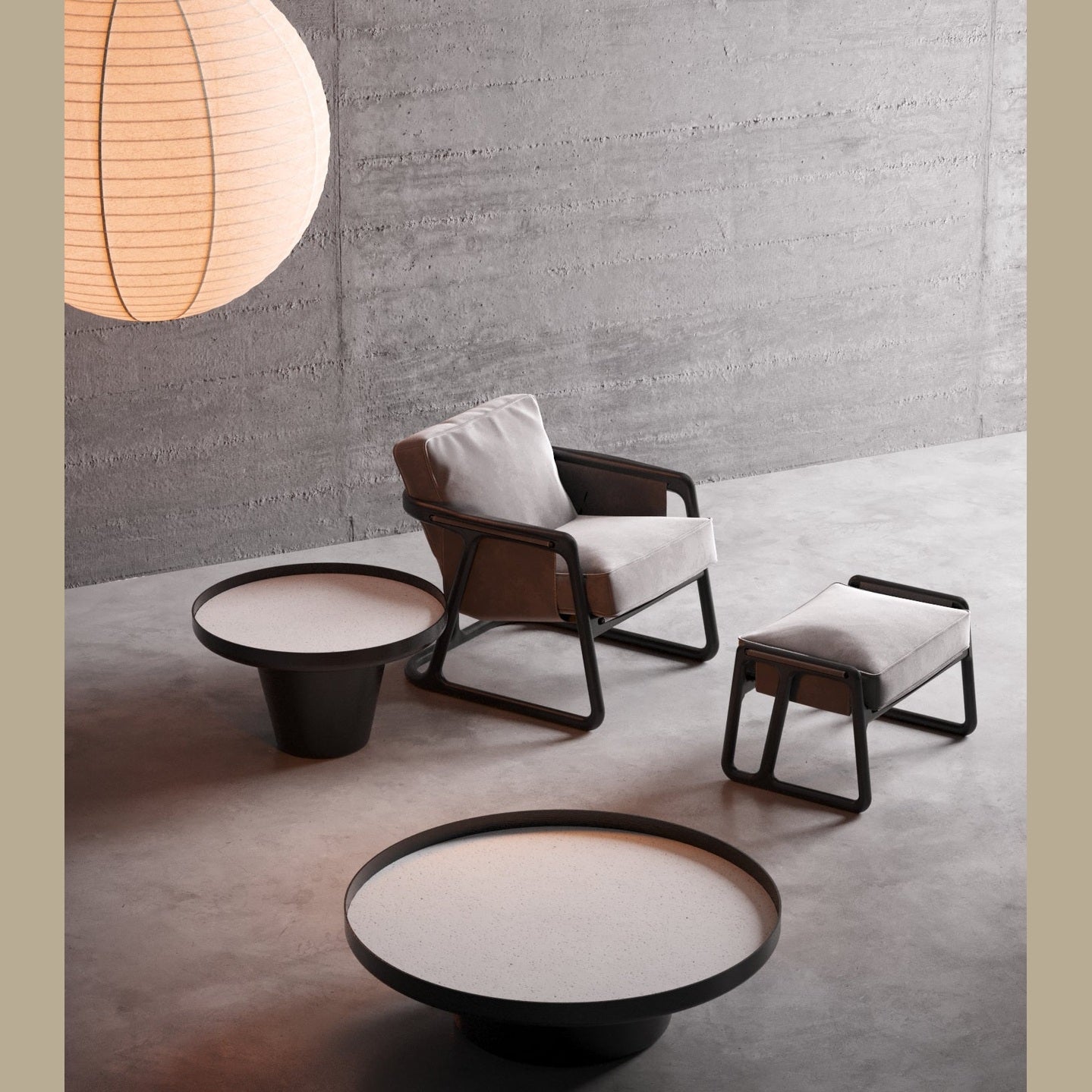 Disponible en terminaciones acero y nogal, nogal y grafeno, ebanizado y urban, que combinan materiales y tonos para distintos estilos de ambiente. Tapizado disponible en telas y cuero natural.