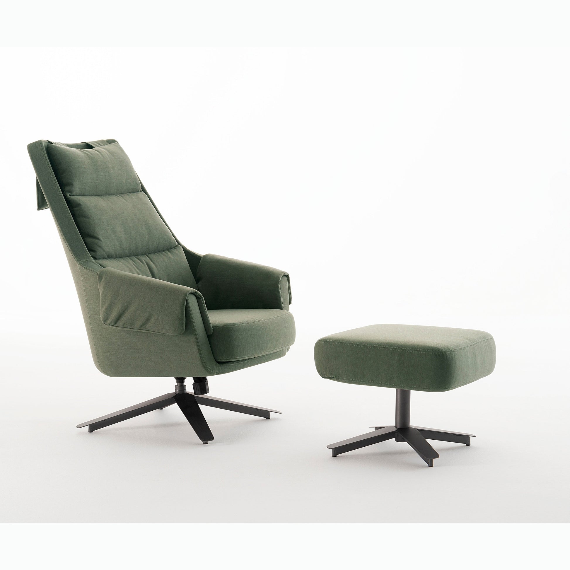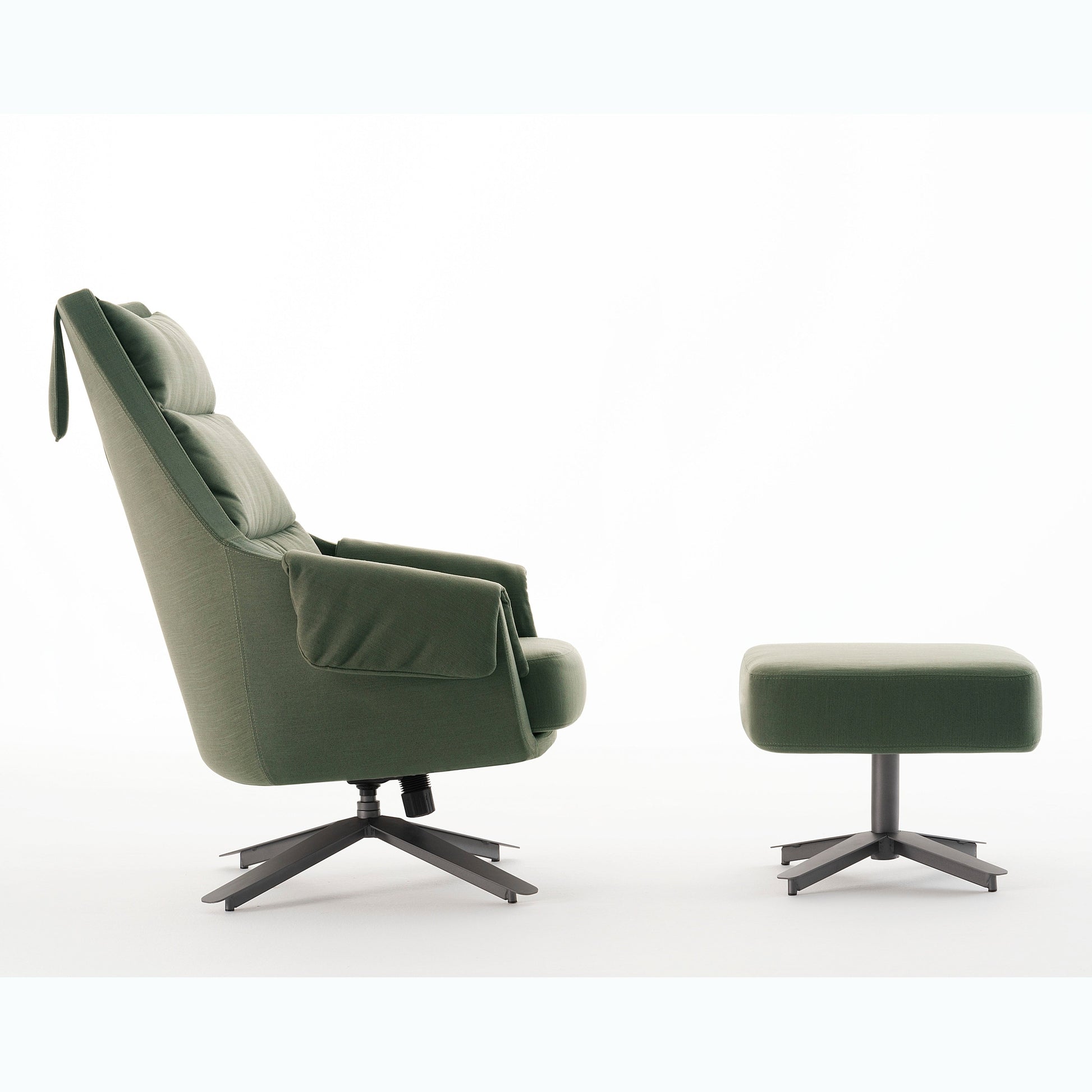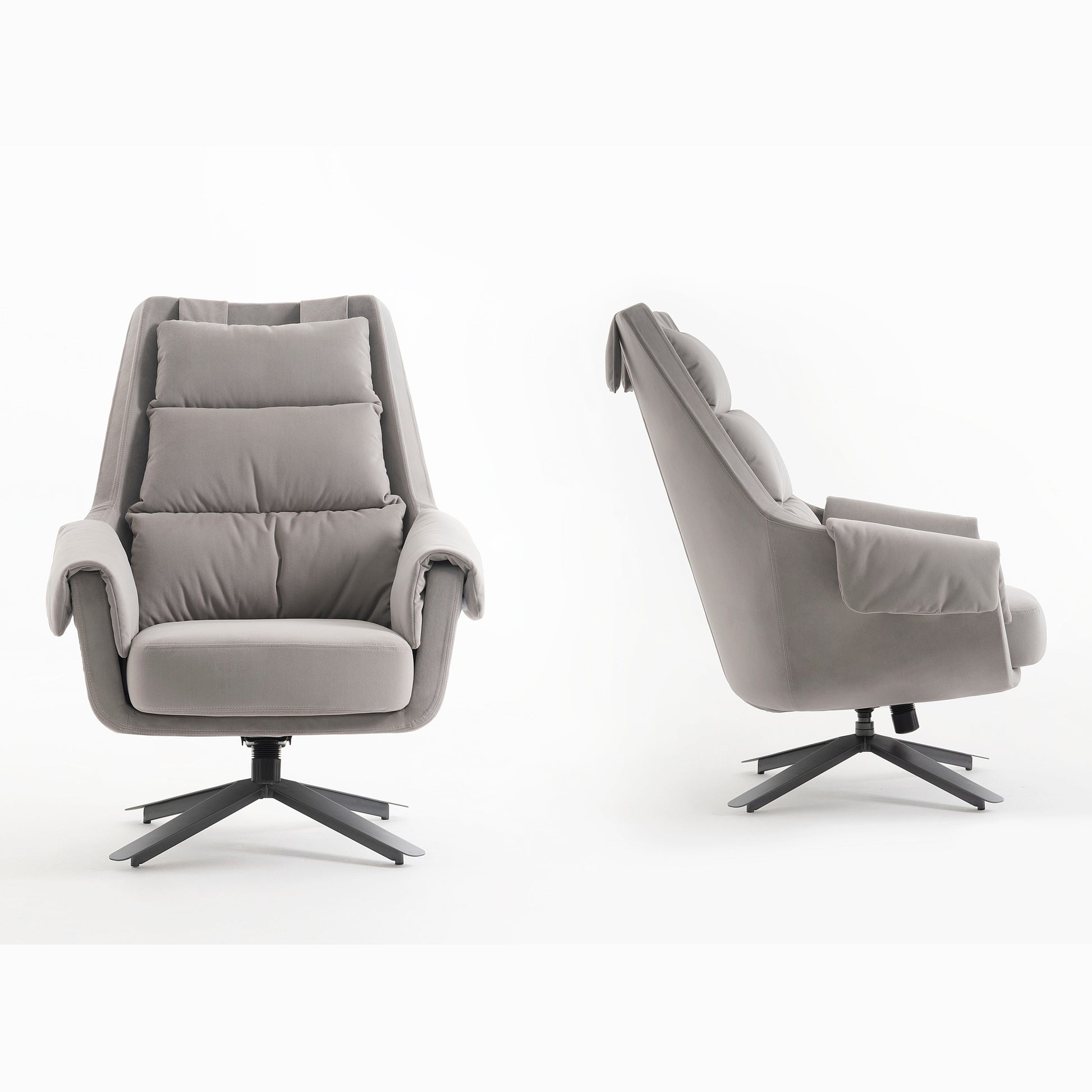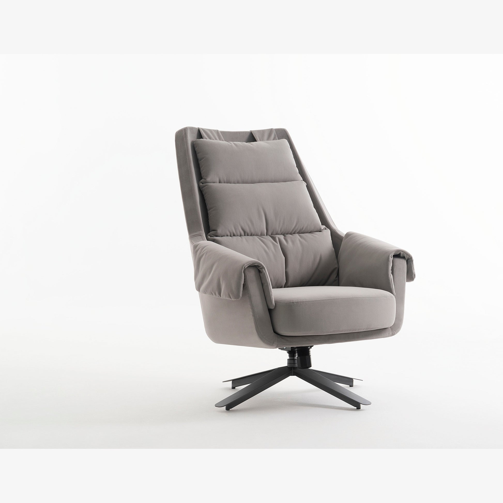 Disponible en distintos diseños de patas, giratoria y con relax. Poltrona de diseño moderno y líneas definidas, pensada para combinar estilo, ergonomía y funcionalidad. Inspirada en la estética contemporánea, esta pieza aporta carácter y sofisticación a cualquier espacio. Con tapizados de alta calidad y estructuras que priorizan la comodidad, es ideal tanto para áreas de descanso como para rincones de lectura o ambientes de recepción. Una invitación a relajarse con elegancia.