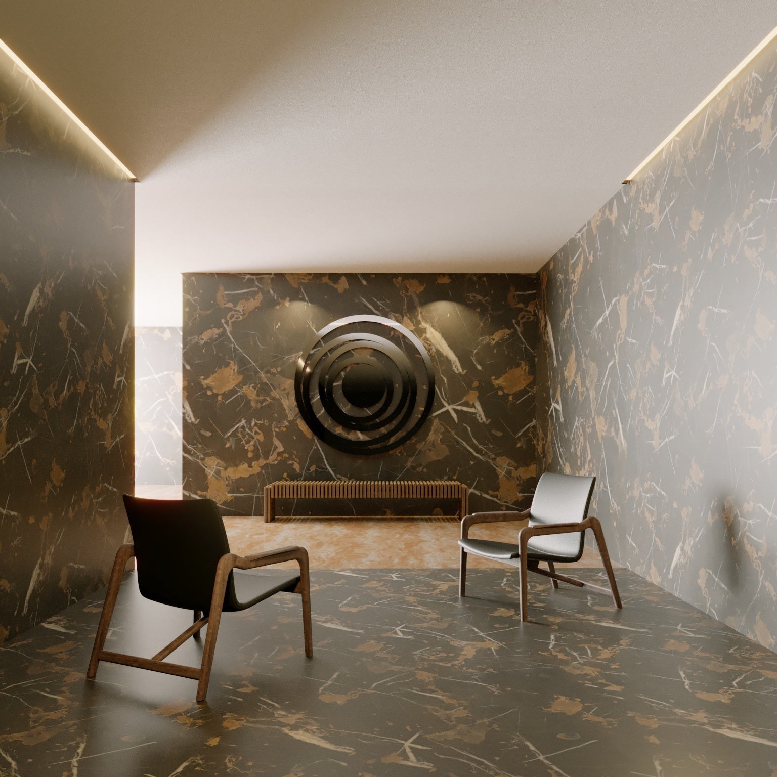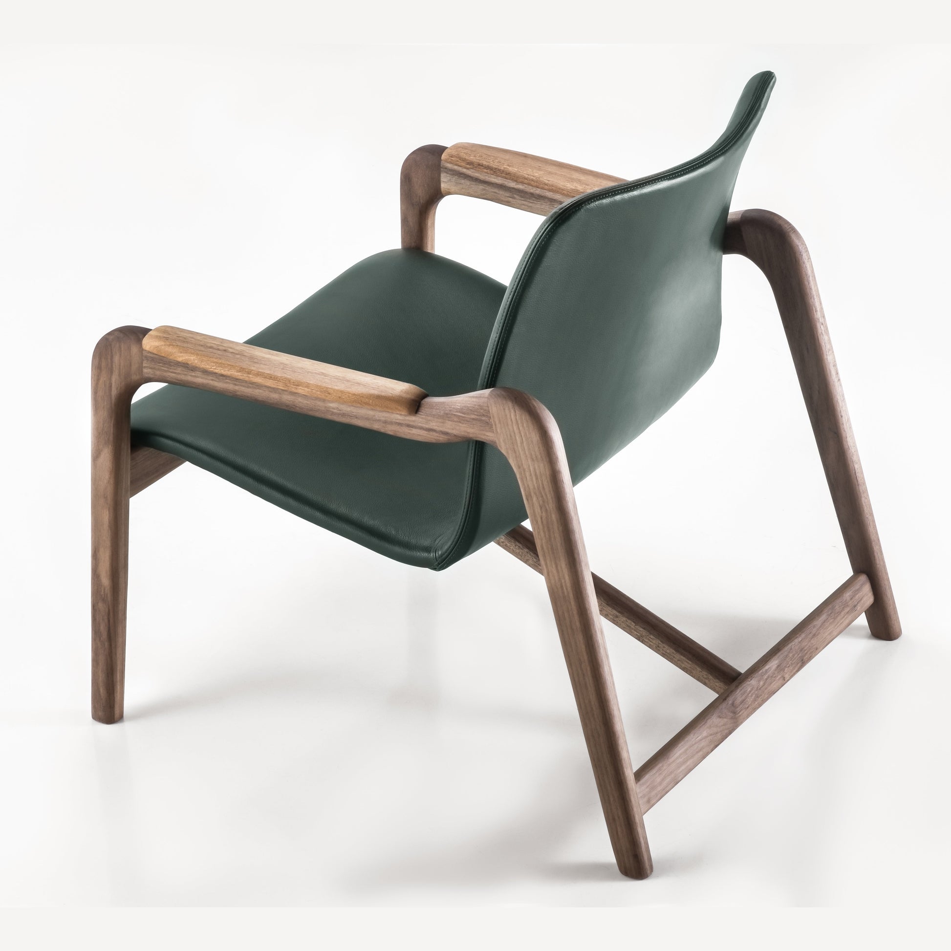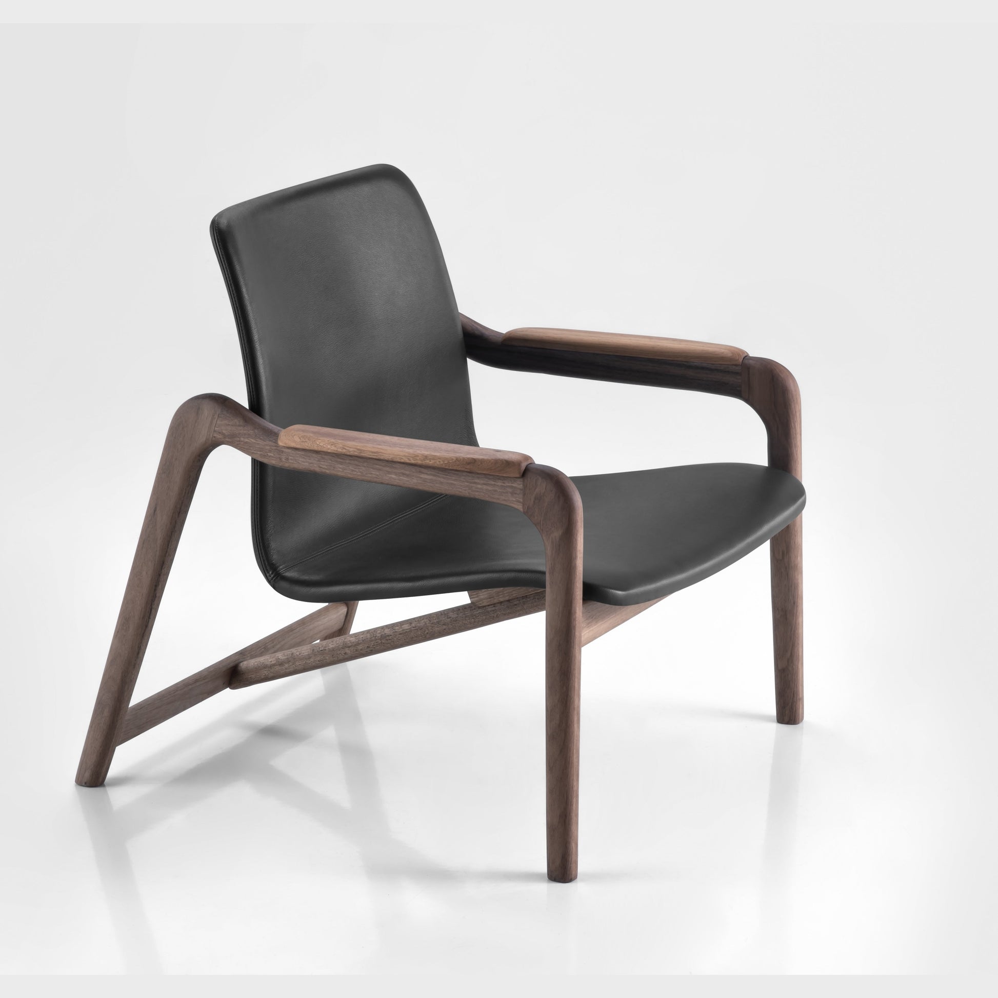 Giratoria. Disponible en terminaciones acero y nogal, nogal y grafeno, ebanizado y urban, que combinan materiales y tonos para distintos estilos de ambiente. Tapizado disponible en telas y cuero natural.