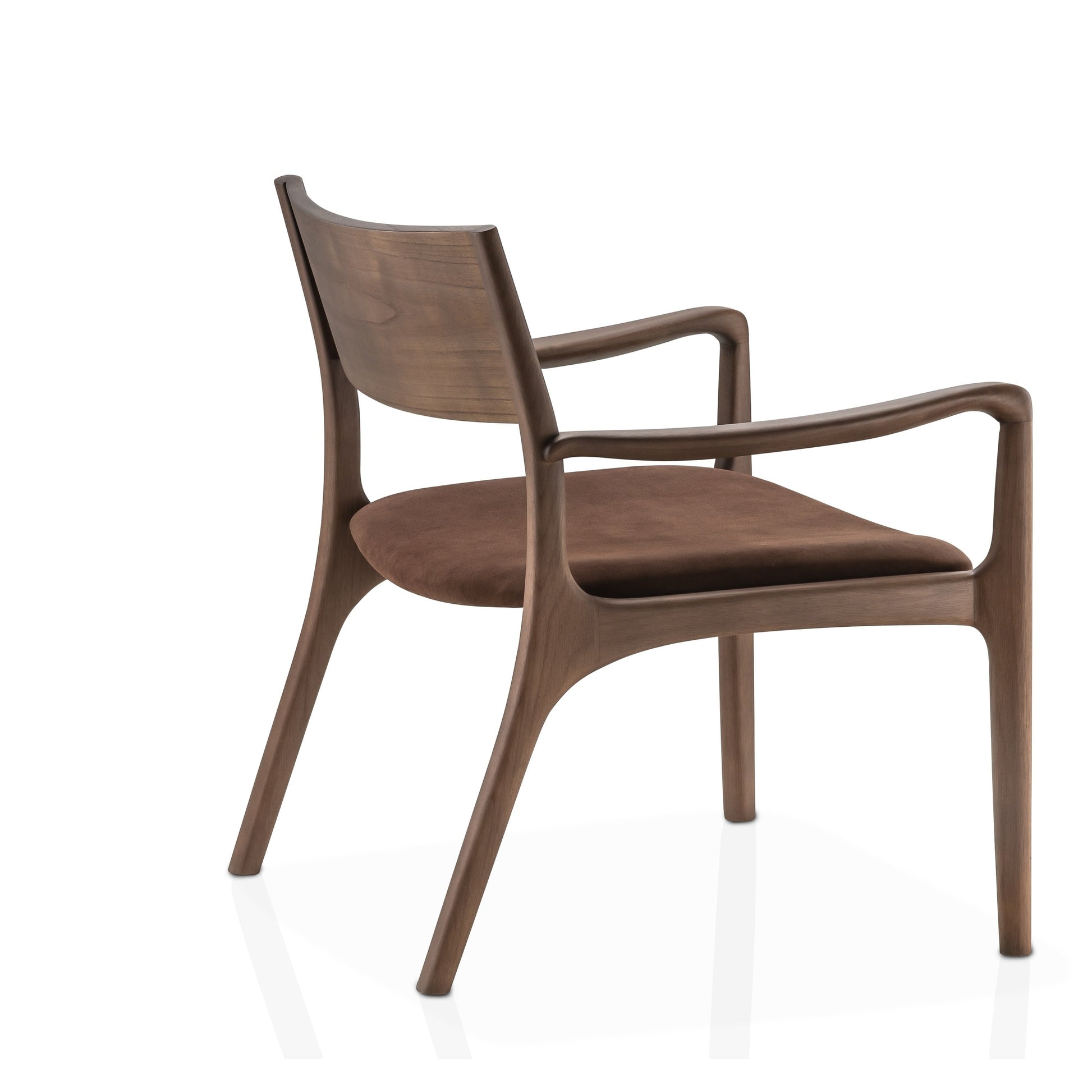 Giratoria. Disponible en terminaciones acero y nogal, nogal y grafeno, ebanizado y urban, que combinan materiales y tonos para distintos estilos de ambiente. Tapizado disponible en telas y cuero natural.