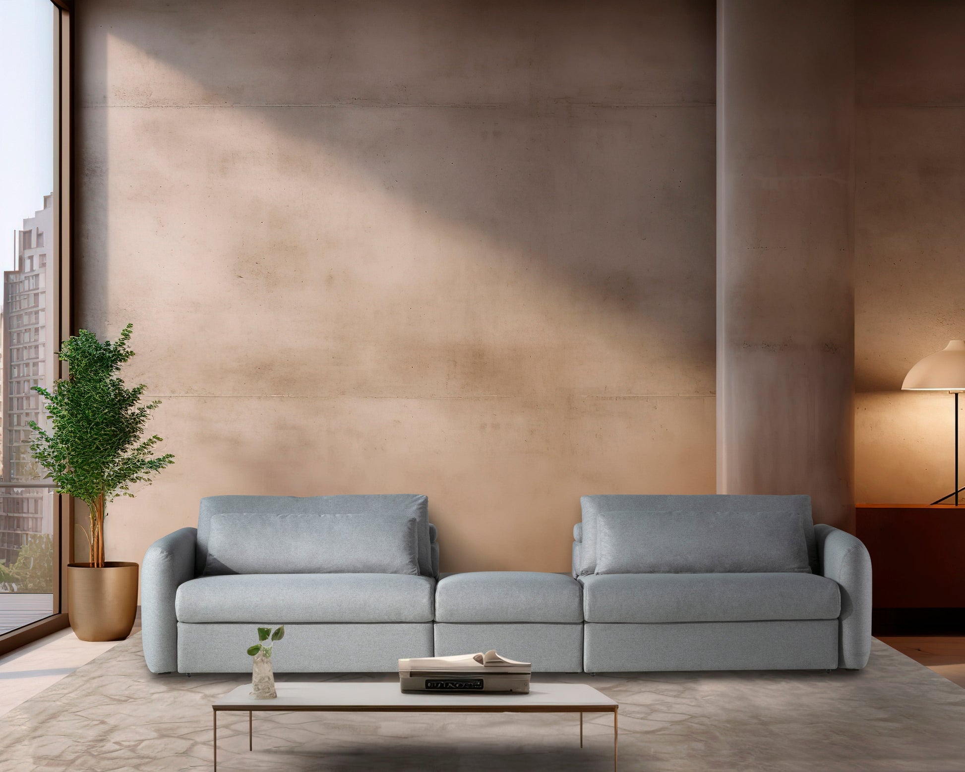 Sofá de diseño moderno y líneas limpias, ideal para ambientes contemporáneos que buscan elegancia y funcionalidad. Su estructura sólida y formas minimalistas se equilibran con cojines suaves y proporciones generosas, ofreciendo una experiencia de confort sin renunciar al estilo. Perfecto para espacios que valoran el diseño refinado, actual y atemporal. Precio desde considera 200 cm + 2 brazos.