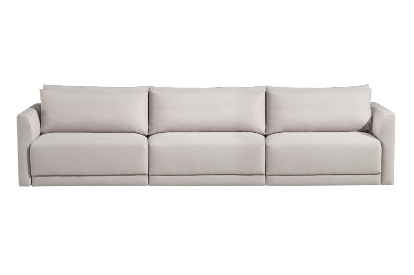 Sofá de diseño moderno y líneas limpias, ideal para ambientes contemporáneos que buscan elegancia y funcionalidad. Su estructura sólida y formas minimalistas se equilibran con cojines suaves y proporciones generosas, ofreciendo una experiencia de confort sin renunciar al estilo. Perfecto para espacios que valoran el diseño refinado, actual y atemporal. Precio desde considera 200 cm + 2 brazos.