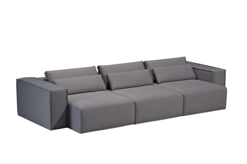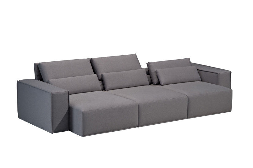 Sofá de diseño moderno y líneas limpias, ideal para ambientes contemporáneos que buscan elegancia y funcionalidad. Su estructura sólida y formas minimalistas se equilibran con cojines suaves y proporciones generosas, ofreciendo una experiencia de confort sin renunciar al estilo. Perfecto para espacios que valoran el diseño refinado, actual y atemporal. Precio desde considera 200 cm + 2 brazos.