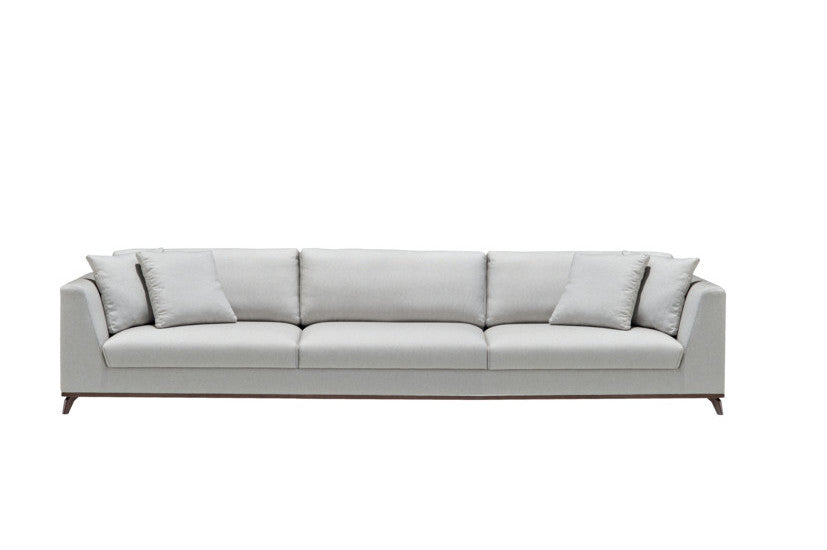 Sofá de diseño moderno y líneas limpias, ideal para ambientes contemporáneos que buscan elegancia y funcionalidad. Su estructura sólida y formas minimalistas se equilibran con cojines suaves y proporciones generosas, ofreciendo una experiencia de confort sin renunciar al estilo. Perfecto para espacios que valoran el diseño refinado, actual y atemporal. Precio desde considera 200 cm + 2 brazos.