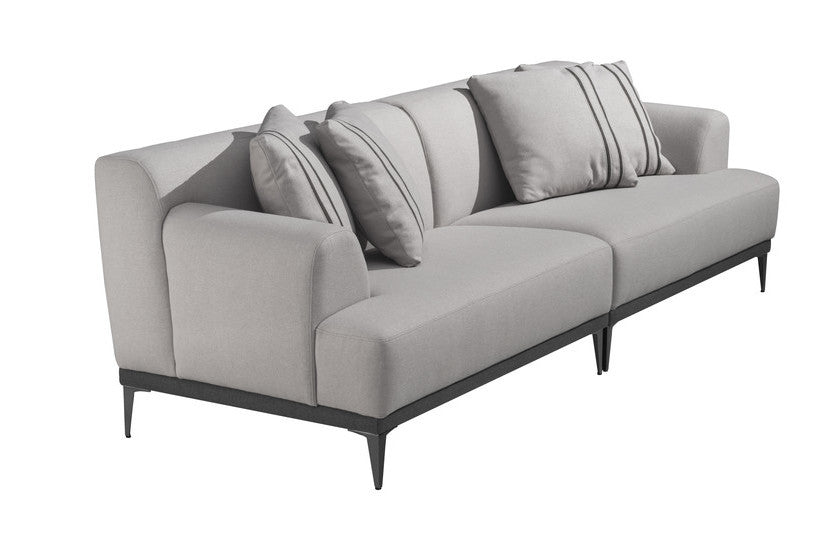 Sofá de diseño moderno y líneas limpias, ideal para ambientes contemporáneos que buscan elegancia y funcionalidad. Su estructura sólida y formas minimalistas se equilibran con cojines suaves y proporciones generosas, ofreciendo una experiencia de confort sin renunciar al estilo. Perfecto para espacios que valoran el diseño refinado, actual y atemporal. Precio desde considera 200 cm + 2 brazos.