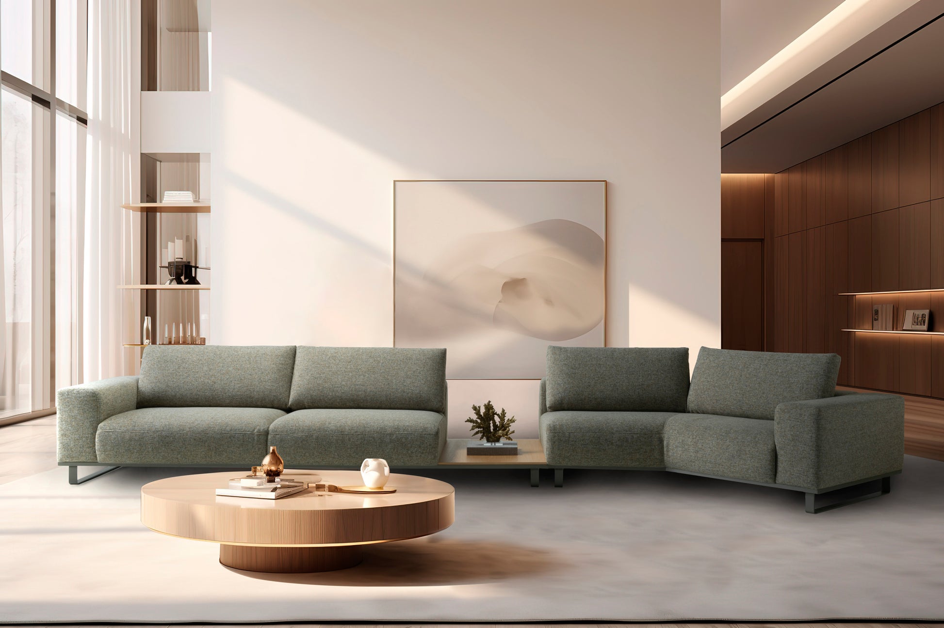 Sofá de diseño moderno y líneas limpias, ideal para ambientes contemporáneos que buscan elegancia y funcionalidad. Su estructura sólida y formas minimalistas se equilibran con cojines suaves y proporciones generosas, ofreciendo una experiencia de confort sin renunciar al estilo. Perfecto para espacios que valoran el diseño refinado, actual y atemporal. Precio desde considera 200 cm + 2 brazos.